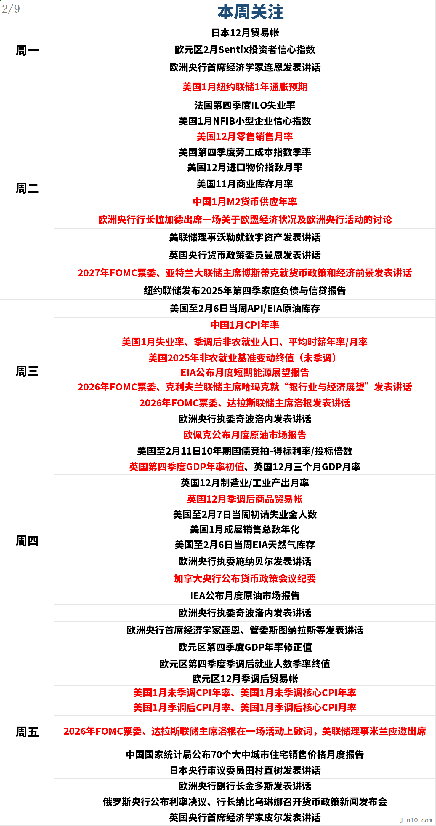 下周,全球金融市场将迎来多重风险共振。美国非农、CPI核心数据集中发布成为黄金与美元对决的核心导火索,叠加中东美伊地缘持续紧张、日本大选落地,再配合多国央行密集的政策动向、美股财报季深入推进,全球资产大概率迎来无序震荡,各市场已显现高波动特征,以下为核心内容总结: